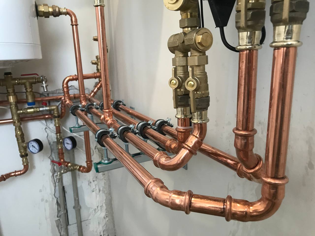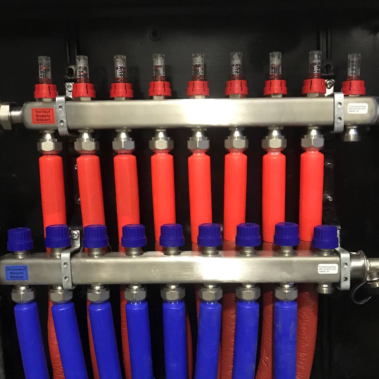 | Монтаж и подключение распределительного коллектора отопления, водоснабжения с подключением магистральных труб и обвязкой запорной арматурой |