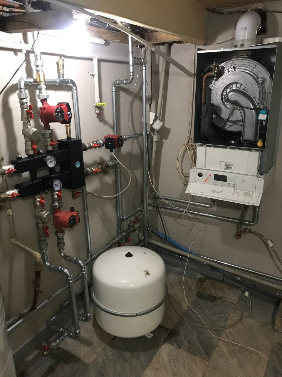 | Монтаж напольного газового котла с обвязкой запорной арматурой |